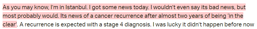 On June 19th, she got news of cancer recurrence.