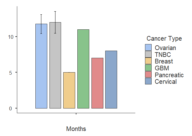 The means of each cancer type can be seen below. Breast cancers were separated based on their description, i.e. confirmed cases of “Triple Negative” and just “Breast Cancer”.